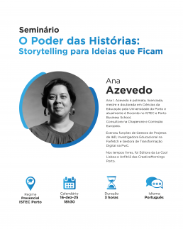 Comunicar é contar histórias que fazem sentido e criam ligação. Este seminário apresenta técnicas narrativas aplicadas a contextos académicos e profissionais, mostrando como transformar dados e ideias em narrativas cativantes. Inclui exercícios de criatividade e storytelling visual.